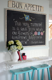 | My chalkboard above the breakfast nook and my Bon Appetit sign I made |